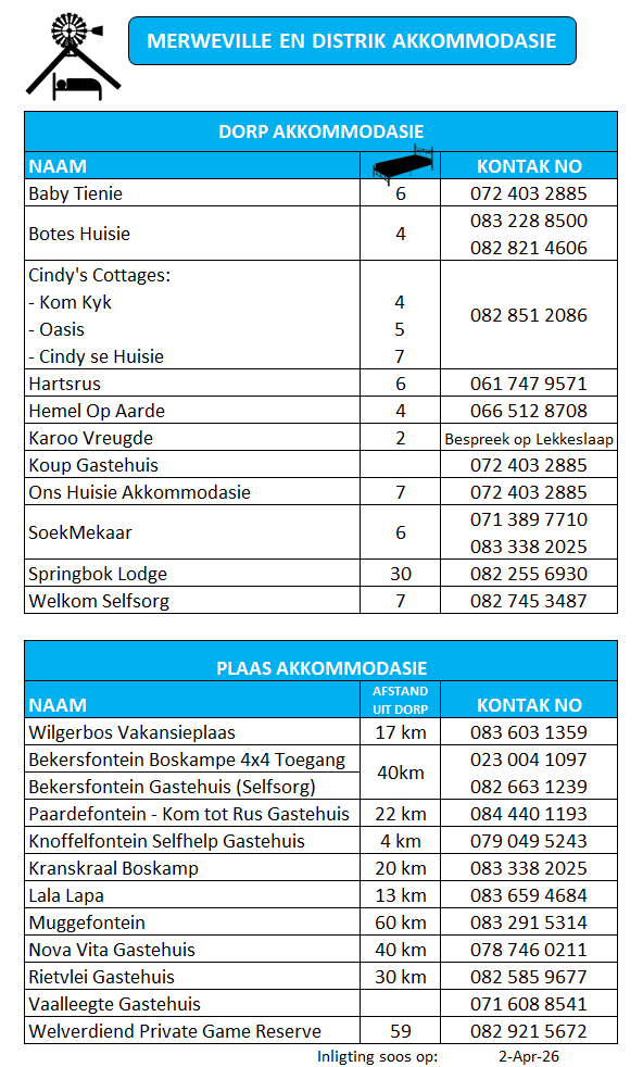 MERWEVILLE ACOMMODATION